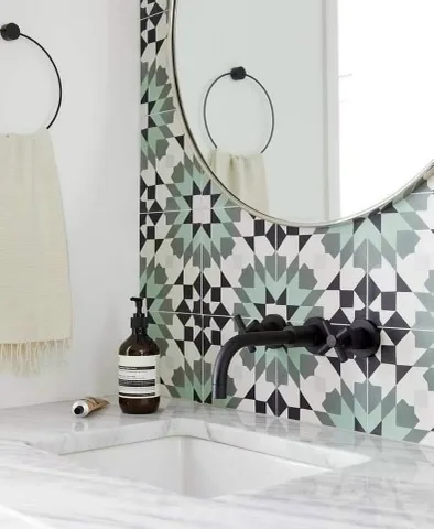 - Utiliser des carreaux de ciment uniquement sur une portion de la crédence pour créer un point focal.
