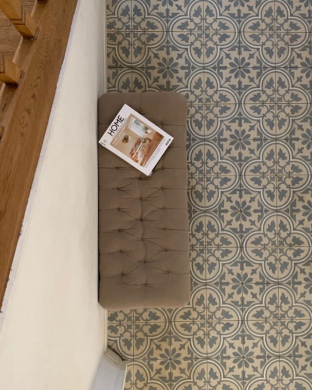 - Dans l’entrée : Créez un sol d’aspect original et accueillant en jouant avec des motifs géométriques ou floraux. Avec son ton naturel et reposant, le carreau de ciment vert offre une première impression délicate et esthétique idéale, qui résistera au fort passage de votre famille et de vos invités.